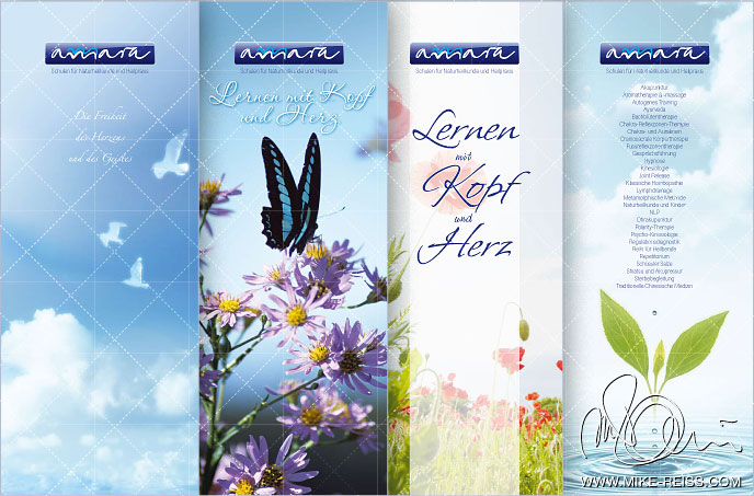 Für die Amara-Schulen habe ich 2007 ein neues Corporate Design entwickelt. Dabei wurde auf der Basis des existierenden Logos ein ganzheitlich geschlossenes Erscheinungsbild mit eigenem Farbsystem, Hausschrift und einem neuen Gestaltungsraster entwickelt. Wichtig war hierbei die Berücksichtigung des Schulmottos: Lernen mit Herz und Verstand und somit die Abgrenzung zu anderen Heilpraktikerschulen wie zum Beispiel den Paracelsus-Heilpraktikerschulen.